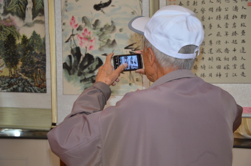从展品的整体水平和展厅布置情况看,具有一定的艺术水准,得到观众的一致好评。前来参观的老同志,有的手拄拐杖驻足欣赏,有的拿着手机不停拍摄,有的相互交流点评,有的向其他同志介绍自己的作品,兴致很高,博得其他老同志的交口称赞,有的老同志意犹未尽,多次前来参观。老同志们普遍反映,展览意义重大,精美程度超出想象。退休干部张光第现场即兴赋诗一首《观老同志书画展》:“古稀耄耋情无垠,泼墨涂彩笔有神。横刀立马从天降,一扫日寇百万军。少壮从戎赴风烟,扫的鬼子抱头窜。凯歌高奏人欢笑,气宇轩昂活当年。”