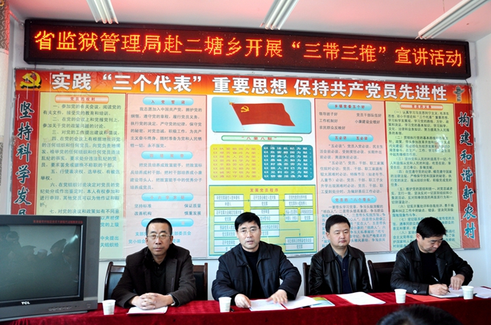 为贯彻落实上级有关精准扶贫工作安排,切实把强农惠农富农政策和省委省政府重大决策部署带到群众家中,全面推进精准扶贫各项工作取得实效,省监狱管理局政委刘海生在门源监狱监狱长党永忠、柴达木监狱政委金渤等同志的陪同下,于3月14日至22日深入海东市化隆县二塘乡隆欠、尕什加村,开展“三带三推”活动和“双帮”工作。