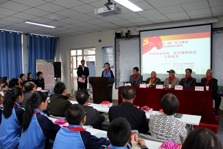 5月25日下午,青海省监狱管理局关心下一代工作委员会、局属各干休所与西宁市第十一中学联合开展“两学一做”、传承革命传统,坚定理想信念进校园活动。省局政委、局关心下一代工作委员会副主任刘海生,副主任退休干部李立新、党克利及局离退休干部处、局各干休所负责人、局属各单位老干科科长、西宁市第十一中学教职工党员、团员代表、少先队员代表共150余人参加了活动。局第一干休所离休干部、抗日老战士王杰、魏广成做了“继承革命传统、坚定理想信念、做合格党员”的精彩演讲。