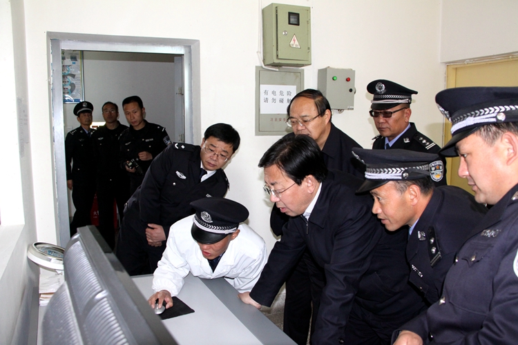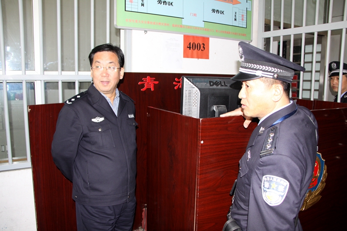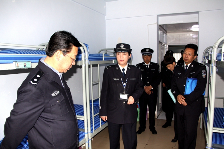 5月17日,在局办公室主任陈亮、狱政管理处处长李明荣、计财处处长李英等陪同下,沈森深入女子监狱对监狱敷防设施、罪犯监舍及生产车间硬件设施改造、民警“三大现场”执法执勤情况进行了检查调研。