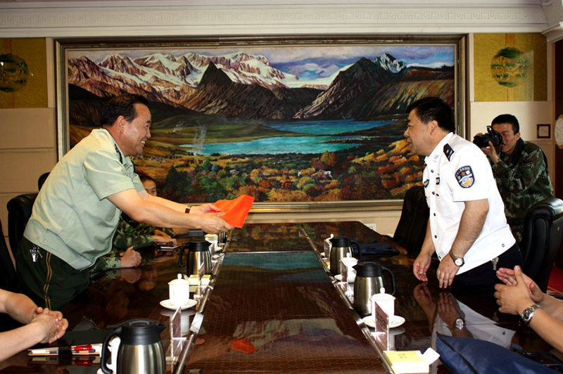 青海监狱局领导看望慰问武警官兵 来源: 发布时间:2016-08-02 17:04:40 浏览次数: 次 【字体:小 大】 7月29日,青海省司法厅副厅长、监狱管理局局长沈森,监狱管理局副局长秦跃福一行先后到武警青海省总队西宁市支队、武警青海省总队看望慰问武警官兵,向他们致以节日的问候,送上慰问金。 武警青海省总队领导感谢青海监狱系统给予武警总队及支队尤其是驻狱武警官兵工作的大力支持和关心。今后双方将继续深化交流,深入推进“三共”建设,积极构建“八联”机制,共同确保监管安全稳定。 分享到: 【打印正文】