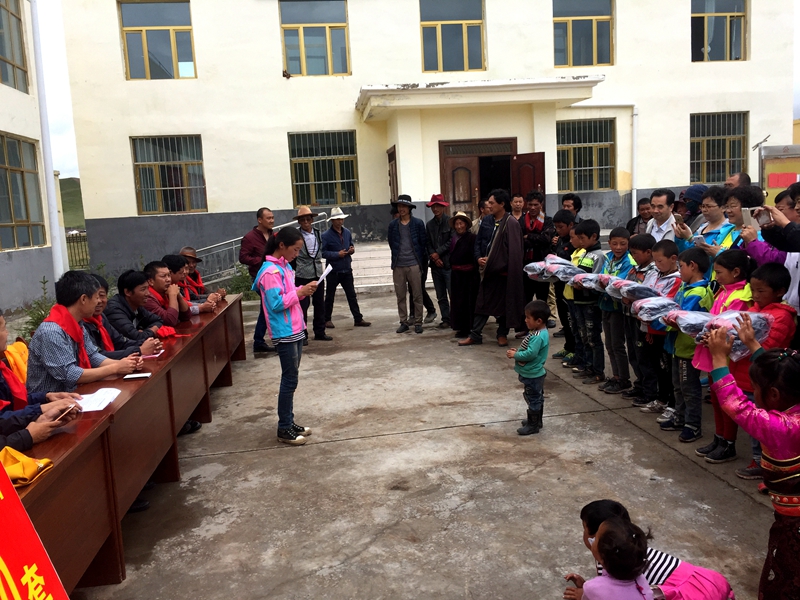 西川监狱党委在落实“双帮”、精准扶贫工作中,注重标本兼顾,想方设法帮助联点结对的贫困村促进经济产出,并时时不忘将助学助教、教育扶贫作为精准扶贫的重要举措,努力改变思想贫困、知识贫困和智慧贫困的不利因素。2016年8月24日,天公虽不作美,党委班子成员王建国、王建祥和监狱民警代表30余人,依然冒着淅沥的秋雨和瑟瑟的凉风,前往监狱结对帮扶的同仁县瓜什则乡赛庆村开展捐赠扶贫助学校服和入户走访送暖活动。