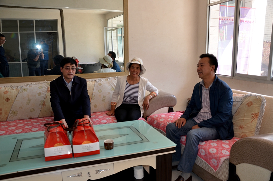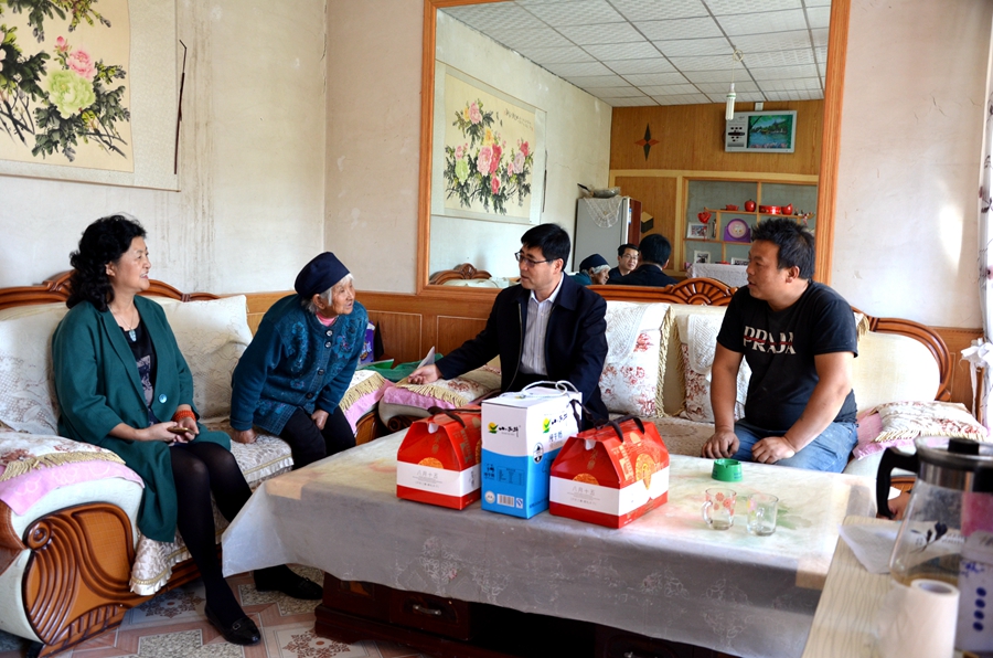 青海省监狱管理局刘海生政委一行看望结对帮扶村贫困户村民 来源: 发布时间:2016-09-18 14:57:20 浏览次数: 次 【字体:小 大】 每逢佳节倍思亲,中华传统佳节中秋节来临之际。省监狱局政委刘海生带领离退休干部处的同志来到互助县塘川镇刘家村开展精准扶贫工作,慰问了驻村干部,并走家入户逐一看望了结对帮扶的“亲戚”,与他们促膝交谈,商议致富之策,为他们送上月饼等食品,祝愿他们中秋节快乐。 分享到: 【打印正文】