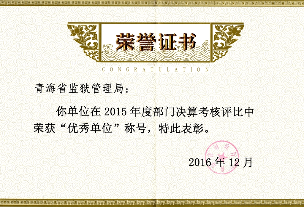 青海省监狱管理局在2015年度部门决算考核评比中荣获“优秀单位”称号 来源: 发布时间:2016-12-08 09:30:58 浏览次数: 次 【字体:小 大】 根据青海省财政厅印发的《青海省部门决算评比暂行办法》,近期,经省财政厅对2015年省级103个部门决算工作考核评比,全省共10个部门在考核评比中荣获“优秀单位”称号,我局榜上有名,这也是自2010年以来,我局连续第5年获此殊荣。 分享到: 【打印正文】