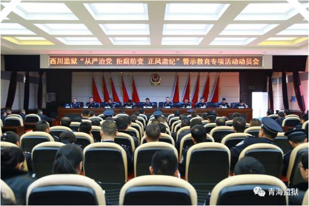 西宁监狱 12月12日下午组织召开“从严治党、拒腐防变、正风肃纪”警示教育专项活动动员大会。监狱党委全体成员、中层领导干部及民警代表共140人参加会议。监狱党委书记、监狱长何建忠作动员讲话。会议由党委副书记、政委杜文来主持。
