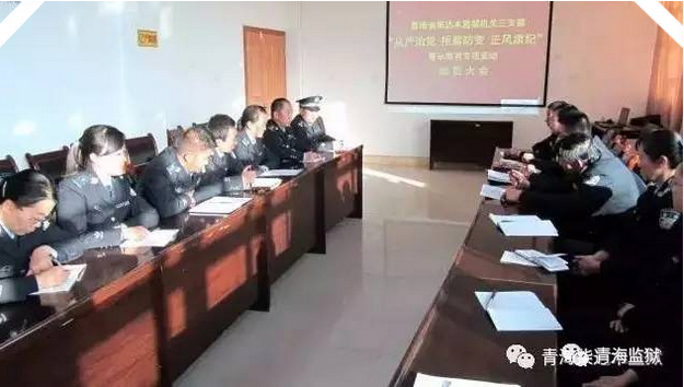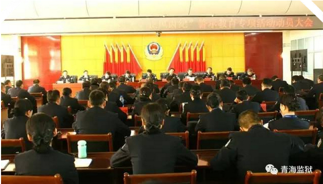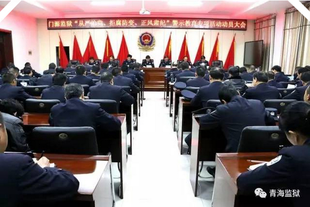 门源监狱 12月12日晚上,门源监狱召开了“从严治党、拒腐防变、正风肃纪”警示教育专项活动动员大会,监狱领导班子成员、副科级以上领导干部及民警代表94人参加,党委副书记、政委韩国华同志主持会议。