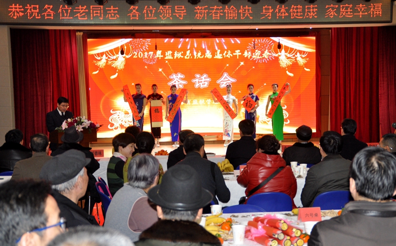 欢声笑语辞旧岁,莺歌燕舞迎新春。1月11日下午,局老干部活动中心多功能厅里春意融融,气氛热烈,全系统离退休干部迎新春茶话会在喜庆祥和的气氛中拉开帷幕。监狱局党委成员,局、青江集团公司机关各处室负责人,局属各单位的主要领导与全系统离退休老干部代表250余人欢聚一堂,辞旧迎新。司法厅机关党委专职副书记索华青应邀出席茶话会,监狱局党委书记、局长沈森致新春祝辞,局政委刘海生主持茶话会。