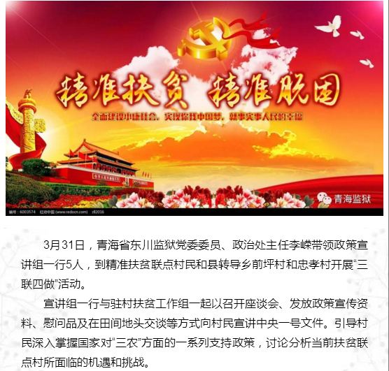 【精准扶贫】重踏探亲之路 带去脱贫之策 来源:青海省东川监狱 发布时间:2017-04-06 15:58:08 浏览次数: 次 【字体:小 大】 青海省东川监狱党委深入开展 “三联四做”活动 分享到: 【打印正文】