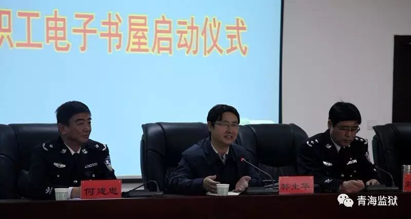 6月13日上午,“青海省职工文化阵地示范点”挂牌仪式暨青海省监狱系统职工电子书屋启动仪式在西宁监狱隆重举行,仪式由青海省监狱系统工会主席闫青梅同志主持,省总工会党组成员、经费审查委员会主任韩生华,省总工会宣教部部长李志宏,青海省监狱管理局党委委员、政委刘海生等出席了挂牌仪式,60余名基层工会主席、职工代表参加了仪式。