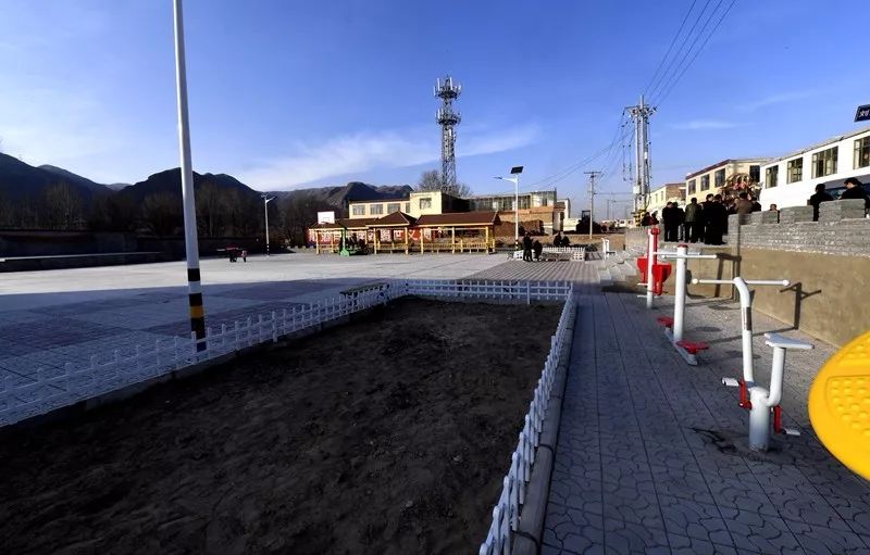 局领导与村两委班子成员在新建的全民健身广场进行调研