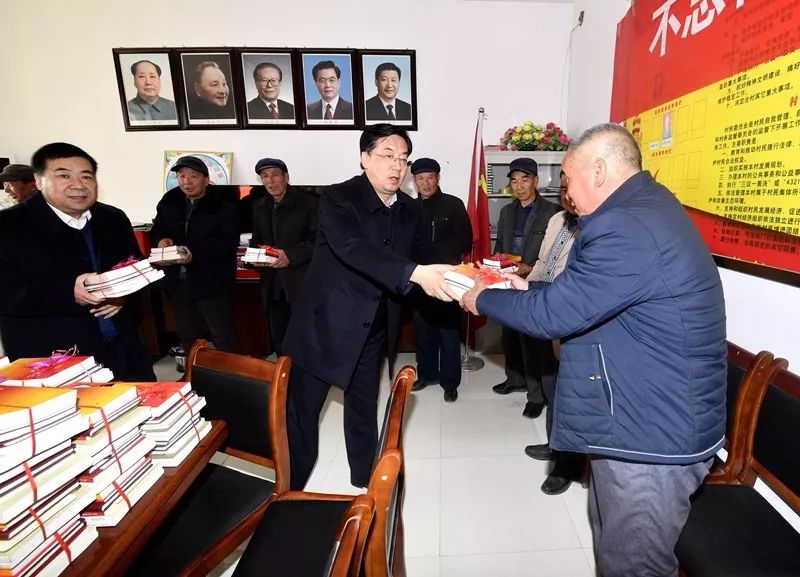 局领导给村两委班子成员及村民党员代表赠送党的十九大精神学习资料
