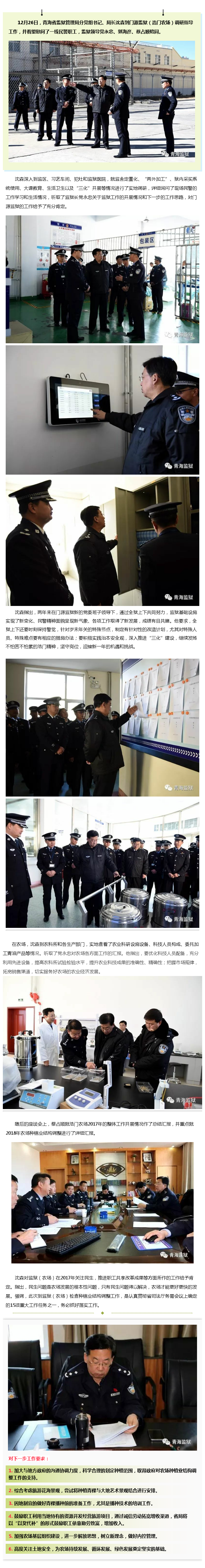 沈森局长调研指导门源监狱工作 来源: 发布时间:2018-01-02 02:04:40 浏览次数: 次 【字体:小 大】 12月26日,青海省监狱管理局分党组书记、局长沈森到门源监狱(浩门农场)调研指导工作,并看望慰问了一线民警职工,监狱领导党永忠、郭海彦、蔡占顺陪同。 分享到: 【打印正文】