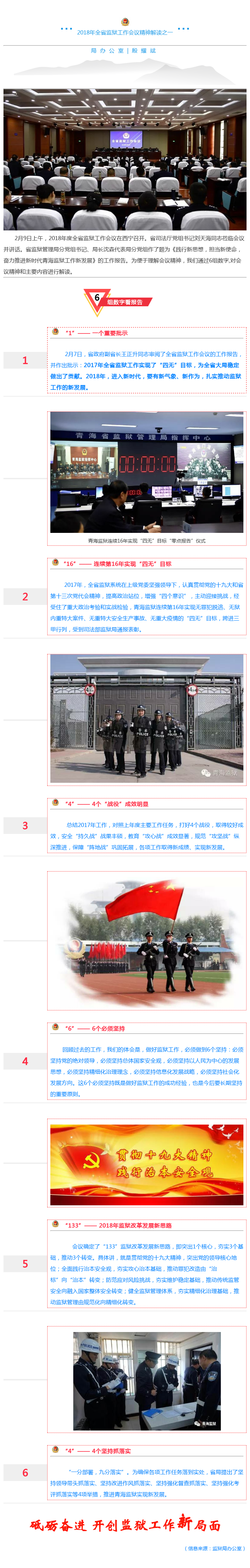 6组数字看2018年青海监狱工作报告 来源:局办公室 发布时间:2018-02-12 11:37:29 浏览次数: 次 【字体:小 大】 《践行新思想,担当新使命,奋力推进新时代青海监狱工作新发展》 分享到: 【打印正文】
