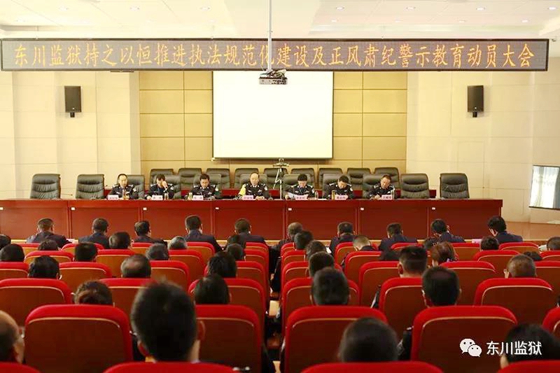 9月13日下午,东川监狱召开持之以恒推进执法规范化建设及正风肃纪警示教育活动动员大会。传达了局长马田瑜在青海监狱系统持之以恒推进执法规范化建设及正风肃纪警示教育活动动员会上的讲话,强调了活动目标任务等重点内容。监狱党委成员、监狱领导及各单位主要负责人、民警100余人参加。