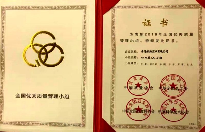 青海东新实业有限公司向日葵“QC”小组荣获“全国优秀质量管理小组”称号
