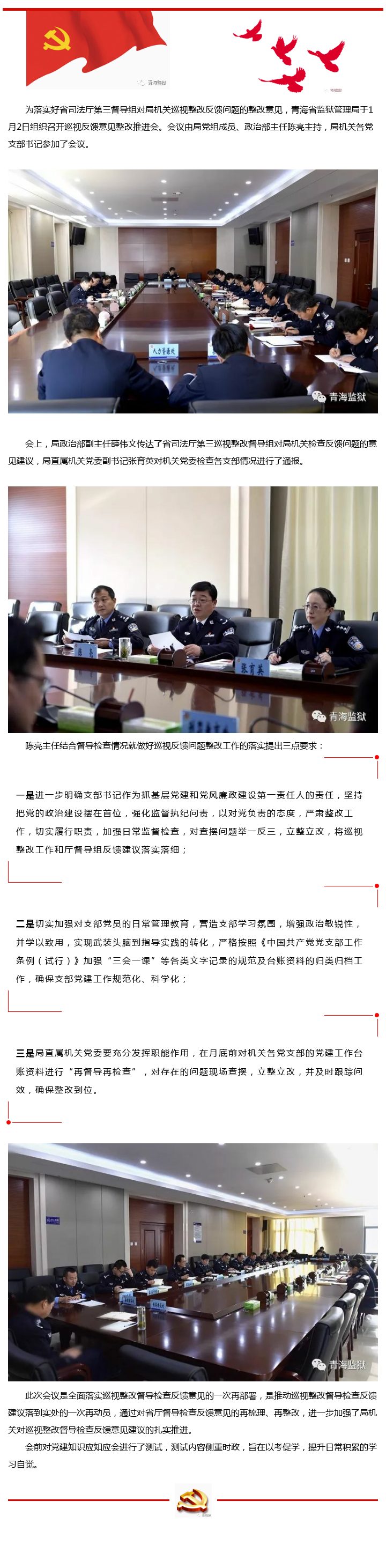 省监狱局党组召开巡视整改督导检查反馈推进会