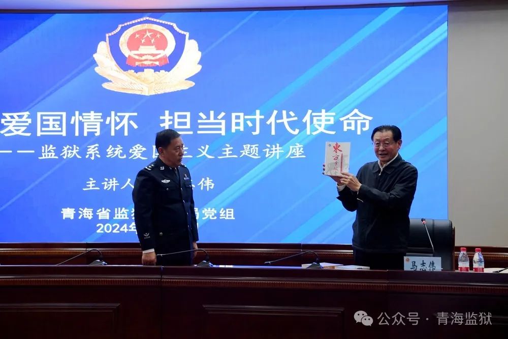 11月8日,青海省监狱管理局党组邀请全国政协第十、十一、十二、十三届常委,政协第十、十一届青海省委员会副主席,民革青海省第五、六、七届委员会主任委员,青海省关心下一代工作委员会副主任马志伟同志,以视频形式为全省监狱系统广大党员民警职工作了题为“铭记历史 爱国奋进”爱国主义主题讲座。省委老干部局副局长、省关工委秘书长祝瑞兴,省纪委监委驻省司法厅纪检监察组副组长徐永前参加讲座。省监狱局党组书记、局长朱正军主持讲座并讲话。局领导及机关各处室、直属各单位全体人员在局机关主会场,各监狱、局中心医院除值班备勤以外的全体民警分别在各视频分会场聆听了讲座。