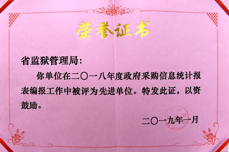 省监狱局被评为2018年度政府采购信息统计报表编报先进单位 来源:计划财务处 发布时间:2019-03-28 09:04:37 浏览次数: 次 【字体:小 大】 3月6日,省财政厅2018年度政府采购信息统计工作情况通报会在省委党校召开,省财政厅对省级各预算单位2018年政府采购工作进行总结、评比,通过对各单位报表报送时间、信息准确性及分析报告质量等方面进行评选,青海省监狱管理局被评为“2018年度政府采购信息统计报表编报先进单位”。此次评选在全省104个省级预算单位中开展,共评选出23家先进单位。 分享到: 【打印正文】