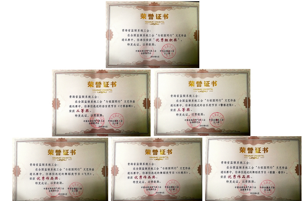 为庆祝中华人民共和国成立70周年,大力弘扬爱国主义精神,培育和践行社会主义核心价值观,进一步推进全国监狱系统民警职工文化建设,中华全国总工会和中国农林气象工会在全国各省、自治区、直辖市的监狱系统工会开展了为期4个月的文艺活动。青海监狱系统工会选送的节目贴近实际,展示了近年来青海监狱系统文化建设成果,反映了全系统民警职工昂扬向上的精神风貌,受到评委的一致好评。
