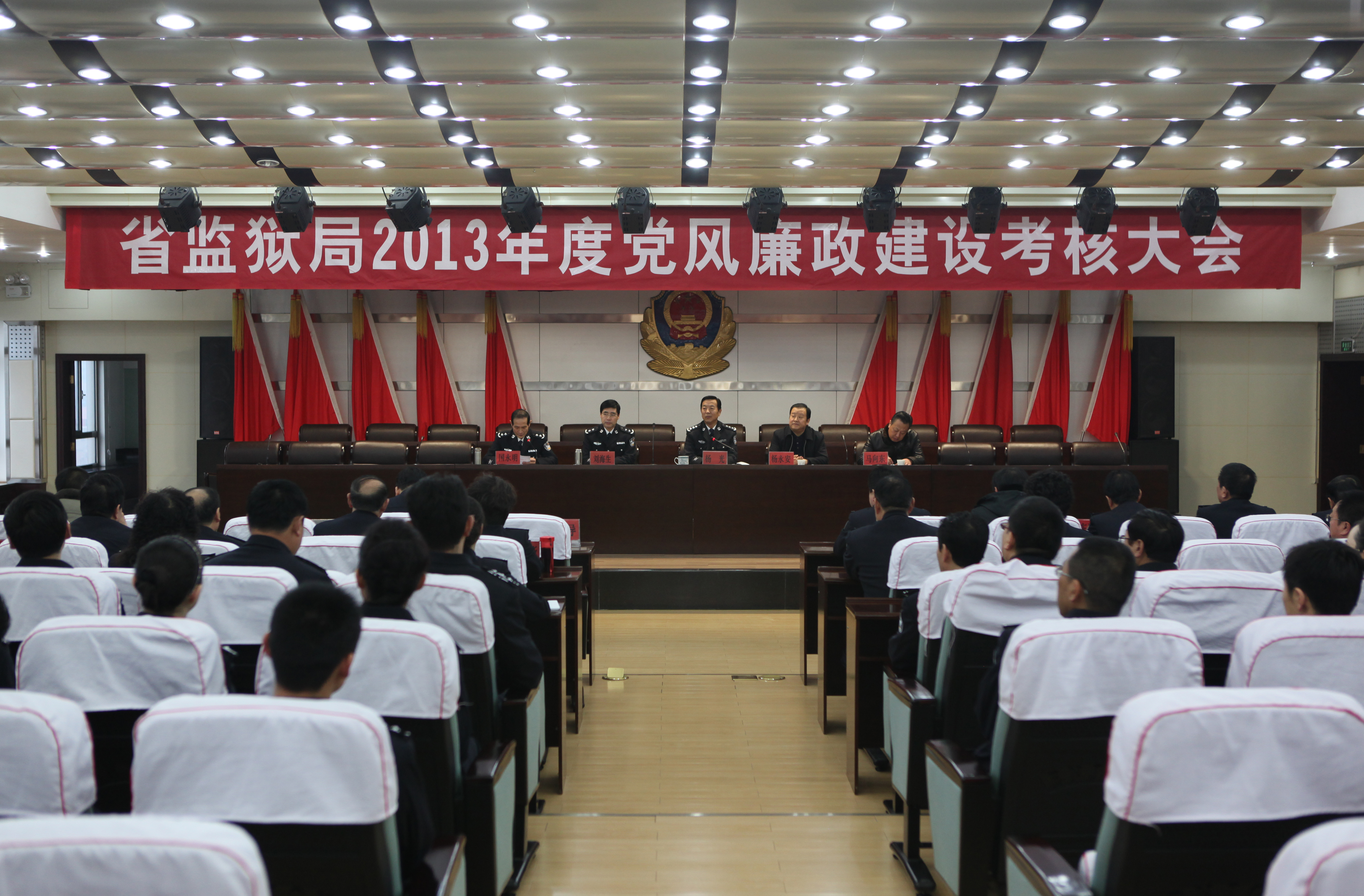 参加考核大会的有局党委成员,西宁地区各监狱监狱长、政委、纪委(副)书记,各干休所、活动中心负责人,局、集团公司机关各处室工作人员。考核大会上,监狱局党委书记、局长杨光同志作为主要负责人进行了个人述职述廉;刘海生政委代表局党委对2013年全系统开展党风廉政建设情况进行了汇报;考核组对监狱局党委和班子成员履行党风廉政建设责任制情况、个人廉洁自律情况进行了民主测评。