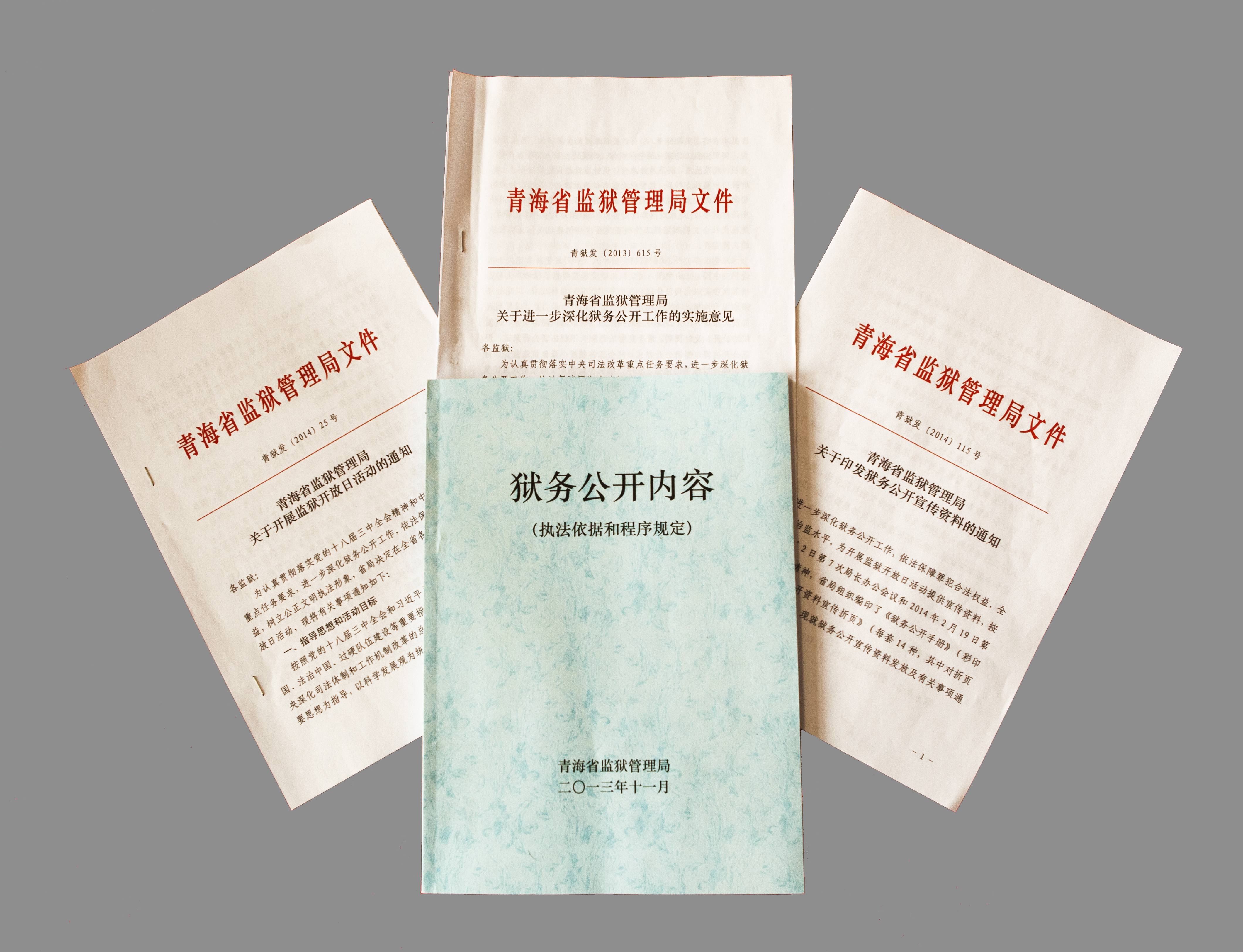 一是根据新颁法律、司法解释以及司法部有关规定制定印发了《青海省监狱管理局关于进一步深化狱务公开工作的实施意见》,并统一汇编了《狱务公开内容》(执法依据和程序规定),在青海监狱内部网站和门户网站公布。