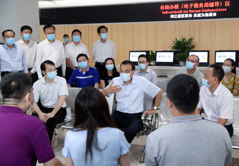 李克强8月21日来到重庆两江新区政务大厅,向前来办事的十几位小微企业人员详细了解疫情冲击对企业经营影响、减税降费政策落实等情况。大家告诉总理,今年国家减税降费力度超出预期,企业普遍受益,得以生存下来。李克强说,不仅减税降费要到位,还要进一步降低门槛,更大激发市场主体活力。总理还听取了重庆深化“放管服”改革情况汇报,对一般企业开办只需1天、零成本办理,24小时“不打烊”政务服务等表示赞许。重庆的网上政务服务“渝快办”,近两年连续被市民评为“我最喜欢的改革”。李克强说,我们改革的成效最终要由人民群众来检验,人民群众的评价最有价值。现在许多地方都推出各具特色的网上政务服务,让企业群众随时随地可以不见面办事,大大提高了审批办事效率,也减少了寻租空间。“渝快办”这个名字取得好:营商环境好坏,要看企业群众办事是否愉快。
