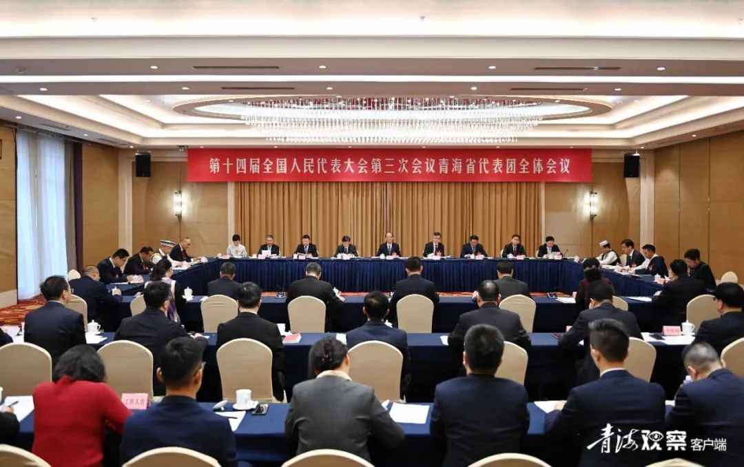 3月3日下午,出席十四届全国人大三次会议的青海代表团举行第一次全体会议。青海日报融媒体记者 张地委 摄